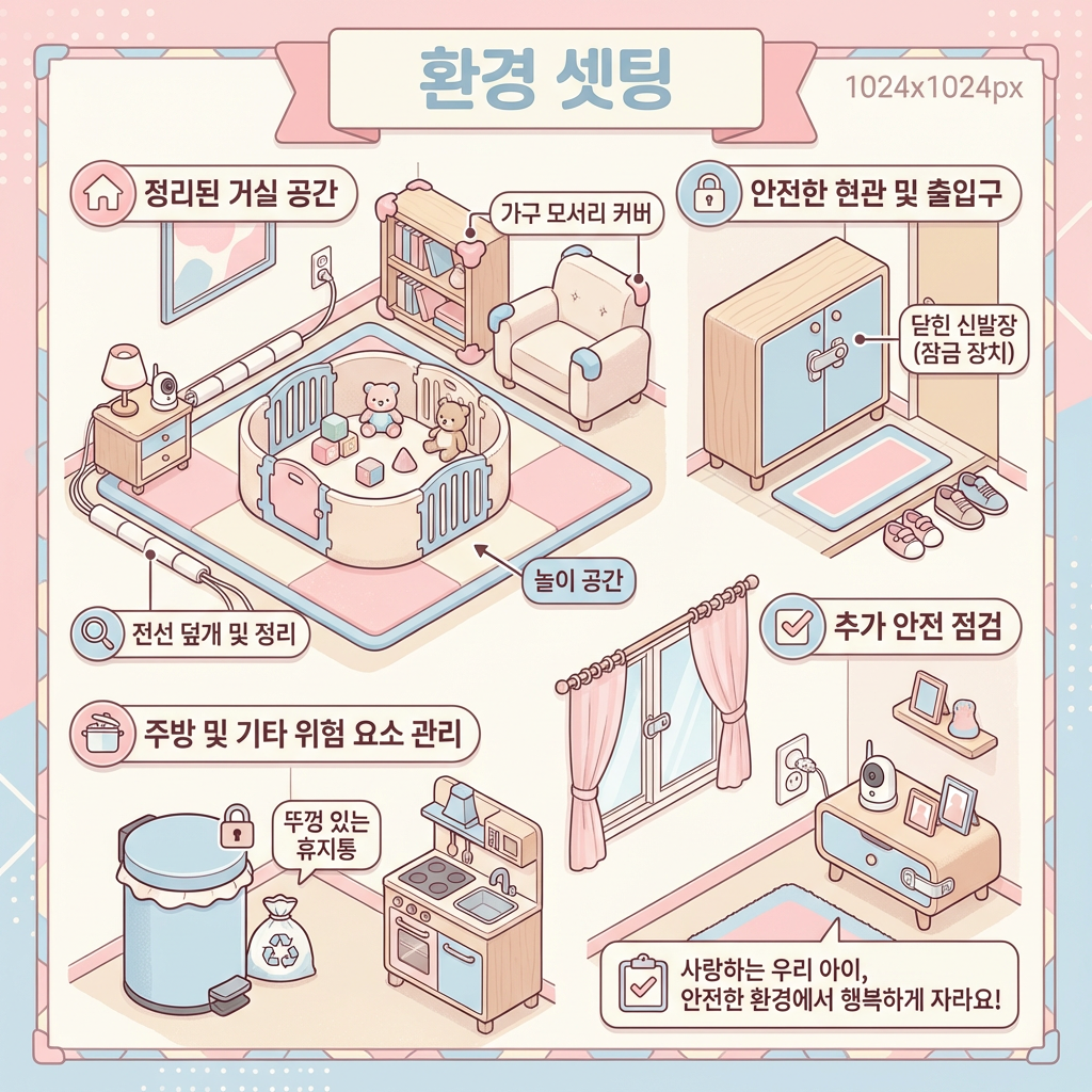 행동 교정과 함께 반드시 병행해야 할 것이 환경 관리예요. 강아지가 접근할 수 없는 환경을 만드는 것이 가장 확실하고 즉각적인 효과를 내요. 특히 이갈이 중이거나 분리불안이 있는 강아지라면, 훈련이 완성되기 전까지는 물리적 환경 통제가 반드시 필요해요.