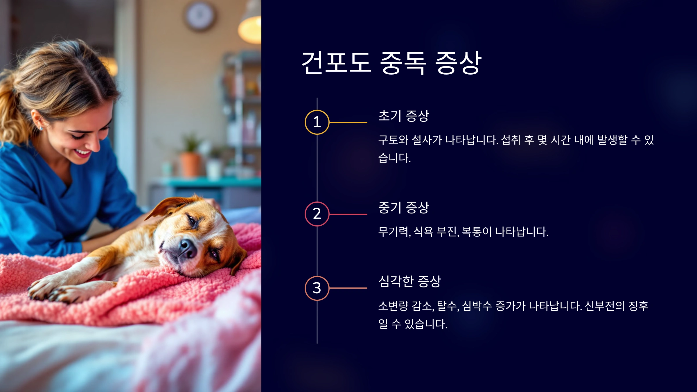 다른 증상으로는 혼수 상태, 발작, 심한 경우 사망까지 이어질 수 있어요. 강아지가 평소와 다른 행동을 보이거나 건강 이상이 의심된다면 지체 없이 수의사에게 연락해야 해요. 보호자의 빠른 대처가 강아지의 생명을 구할 수 있답니다.