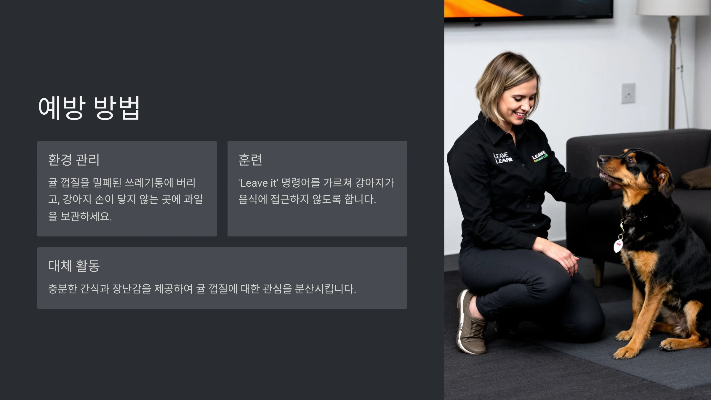 강아지가 귤 껍질을 먹는 상황을 방지하려면 환경 관리와 훈련이 필수적이에요. 귤 껍질을 먹을 수 있는 가능성을 없애기 위해 남은 껍질은 반드시 밀폐된 쓰레기통에 버리고, 강아지와 같은 높이에 과일을 두지 않는 것이 중요해요.