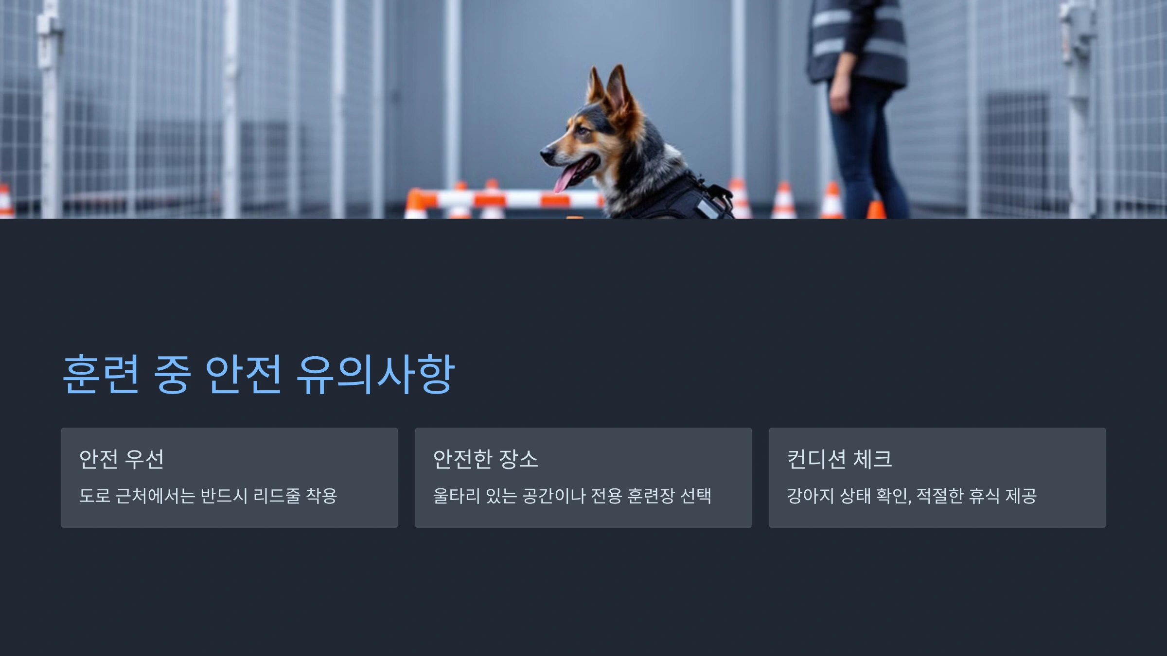 또한, 훈련 장소를 선택할 때 울타리가 있는 안전한 공간을 우선적으로 선택하세요. 공원이나 강아지 전용 훈련장이 이상적이에요. 이렇게 하면 강아지가 갑작스럽게 멀리 도망치는 위험을 줄일 수 있어요.