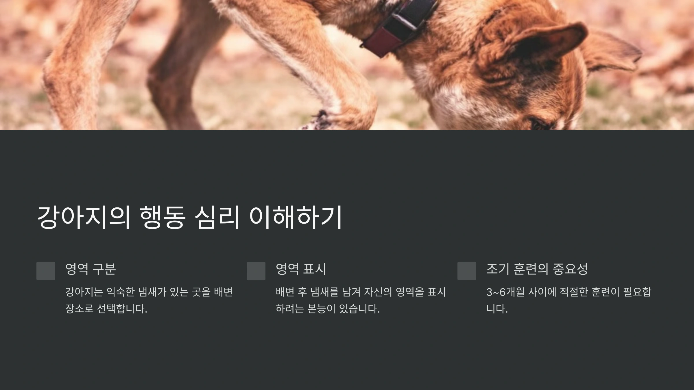 강아지가 배변 후 특정 장소를 긁는 행동 교정법