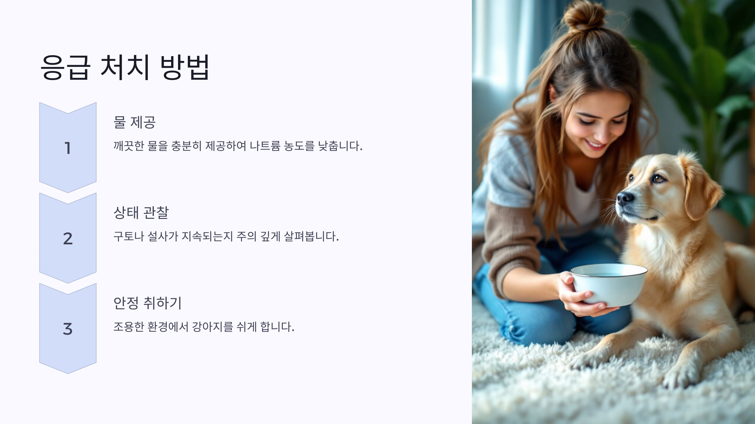 강아지가 소금을 과다 섭취한 것이 확인되면 즉시 적절한 조치를 취해야 해요. 빠르게 대응할수록 강아지의 건강을 지킬 수 있답니다.