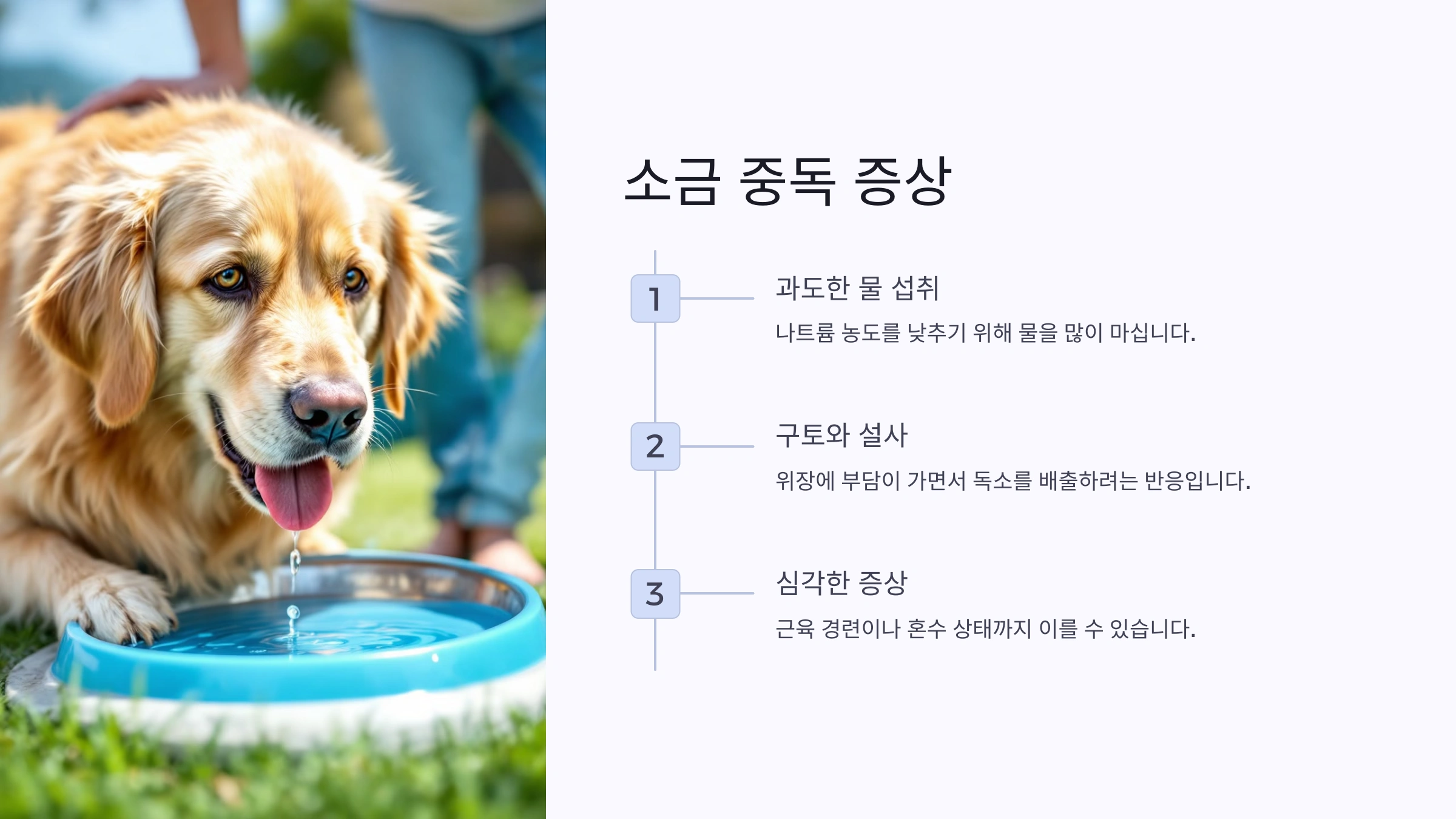 강아지가 실수로 소금을 많이 섭취하면 건강에 심각한 영향을 미칠 수 있어요. 소금 중독은 빠르게 진행될 수 있기 때문에, 증상을 정확히 파악하고 신속하게 대응하는 것이 중요해요.