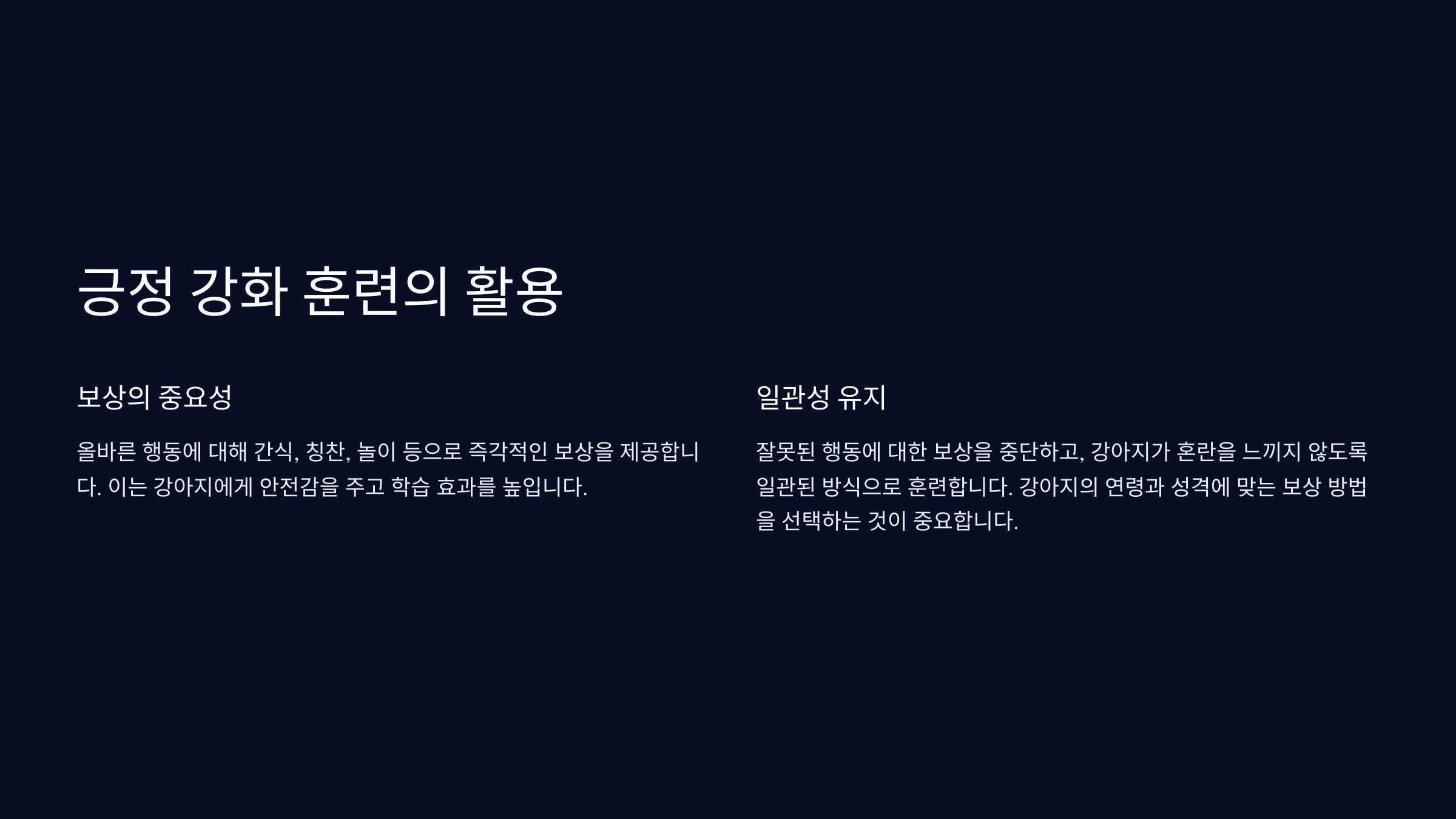긍정 강화는 강아지의 행동 교정에 가장 효과적인 방법 중 하나입니다.