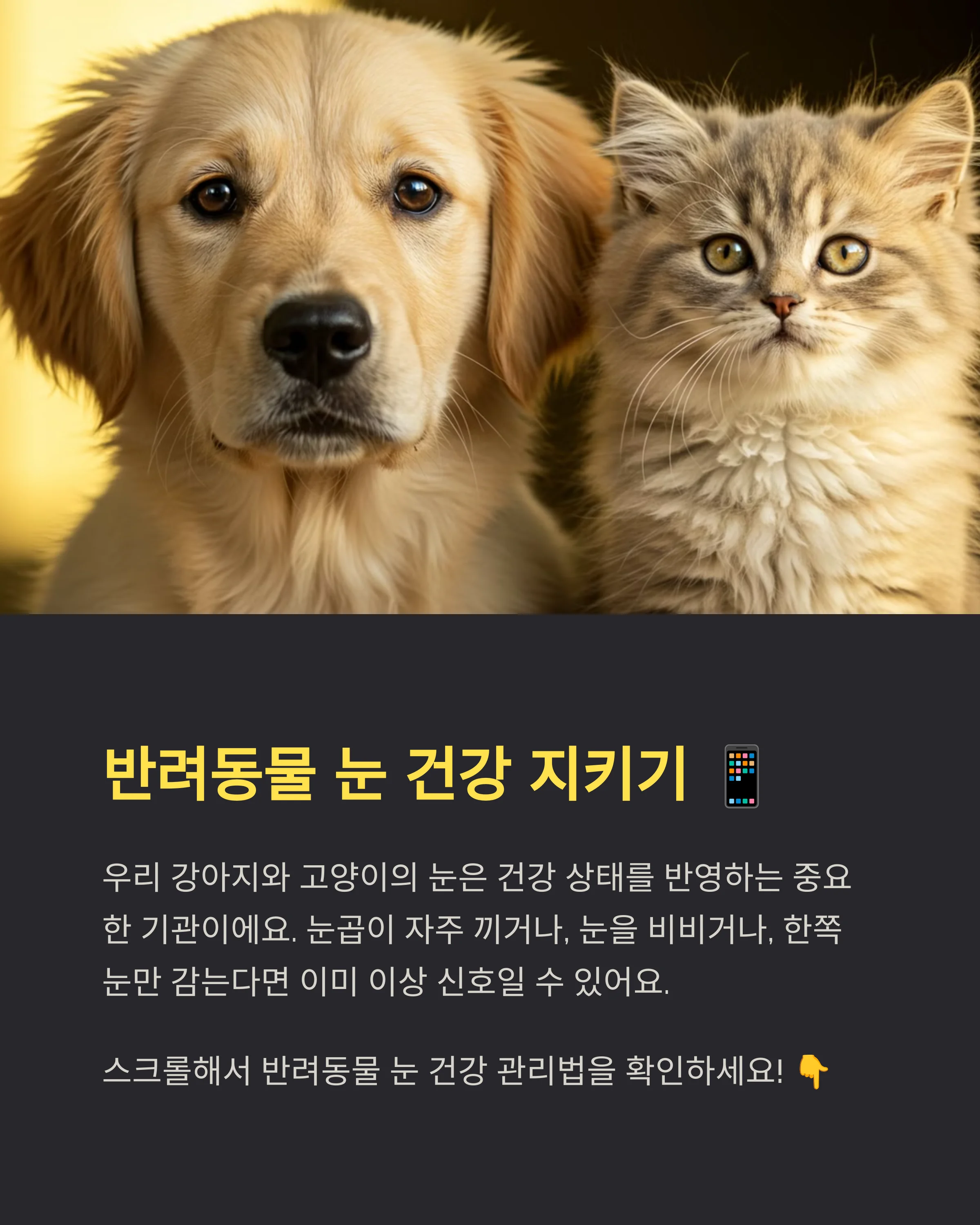 우리 반려동물의 눈, 매일 바라보지만 얼마나 자세히 살펴보시나요? 눈은 건강 상태를 반영하는 중요한 기관이에요. 특히 강아지와 고양이는 눈 질환에 취약한데, 보호자가 평소에 세심하게 관리해주지 않으면 큰 병으로 이어질 수 있어요.