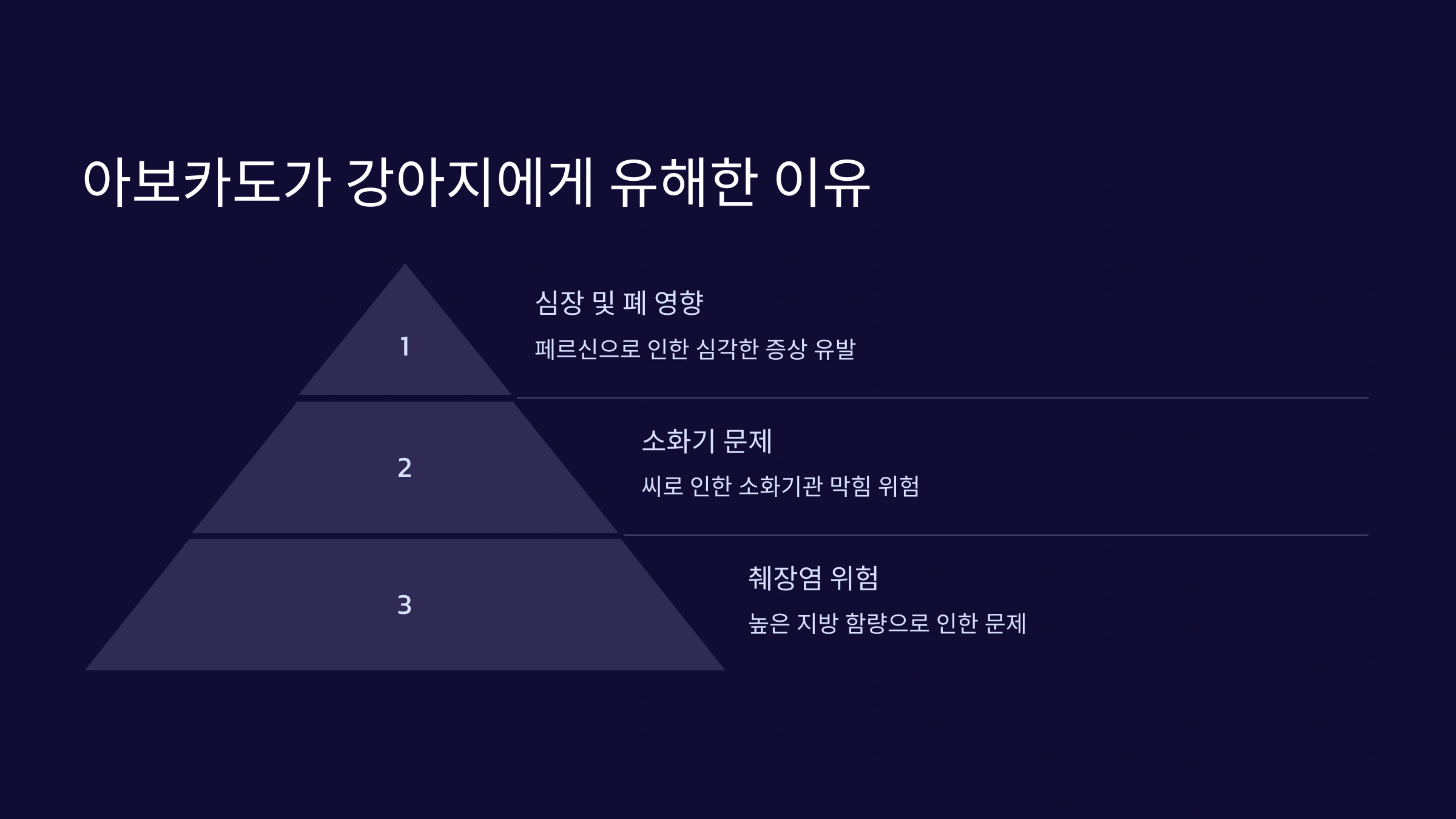 아보카도는 사람에게는 영양가 높은 슈퍼푸드로 알려져 있지만, 강아지에게는 매우 위험한 음식이에요. 그 이유는 아보카도에 포함된 특정 성분이 강아지의 건강에 해로운 영향을 미칠 수 있기 때문이죠.