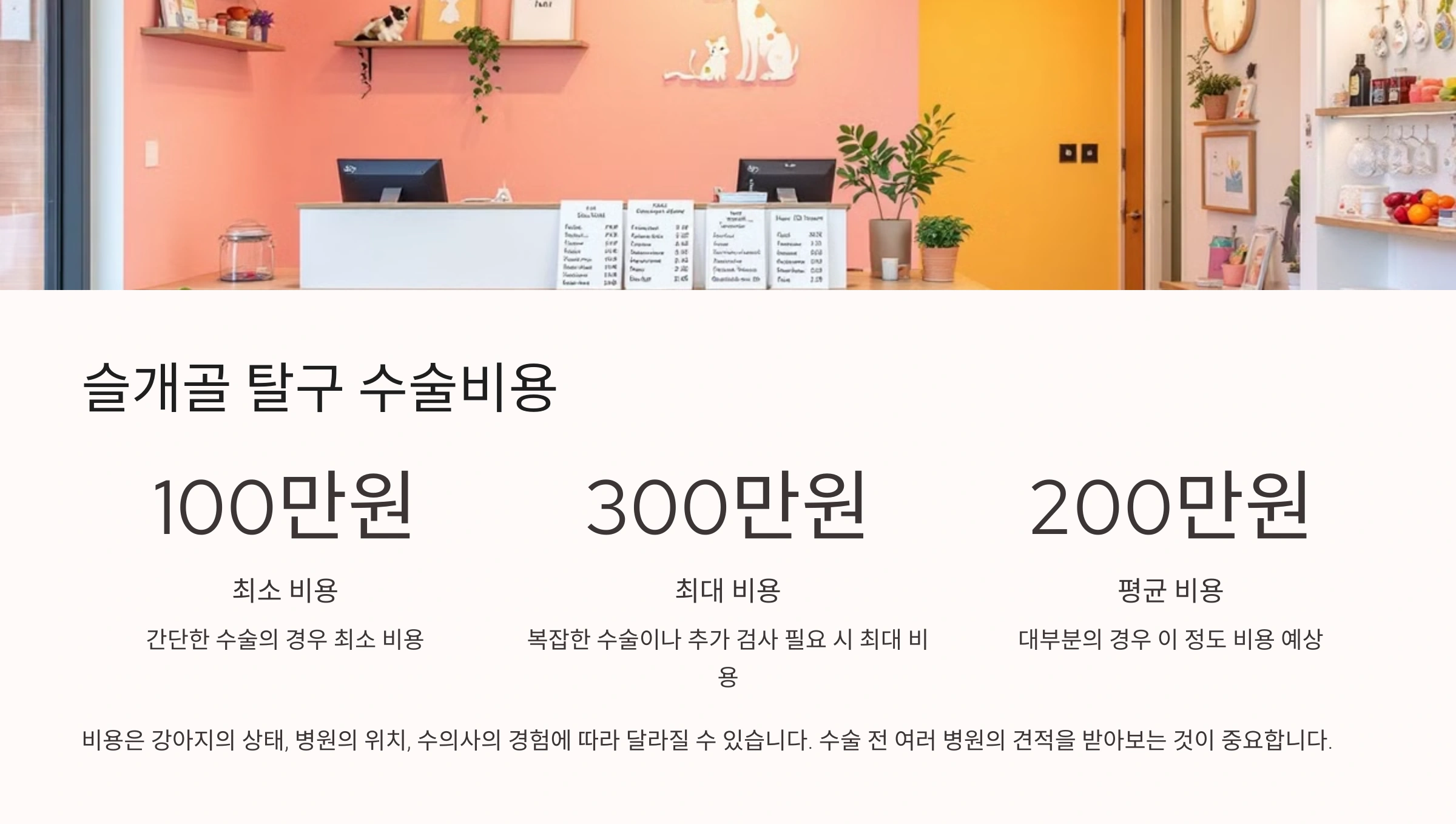 슬개골 탈구의 치료는 단계와 상태에 따라 크게 달라지며, 이에 따라 비용도 변동됩니다. 수술 비용은 대개 100만 원에서 300만 원 사이로, 상태의 복잡성, 병원의 전문성, 위치, 그리고 수의사의 경력에 따라 차이가 날 수 있습니다.