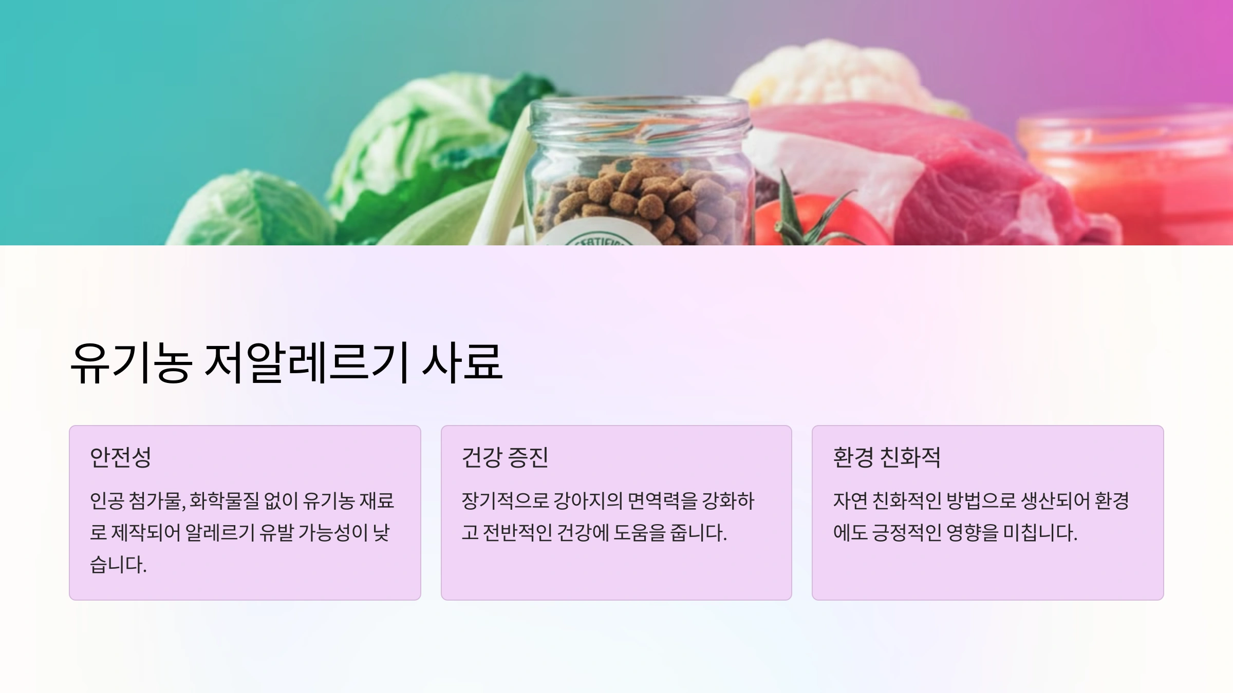 - 알레르기 완화 효과뿐만 아니라 균형 잡힌 영양 공급도 가능해, 민감성 피부와 소화 문제를 동시에 해결할 수 있습니다.