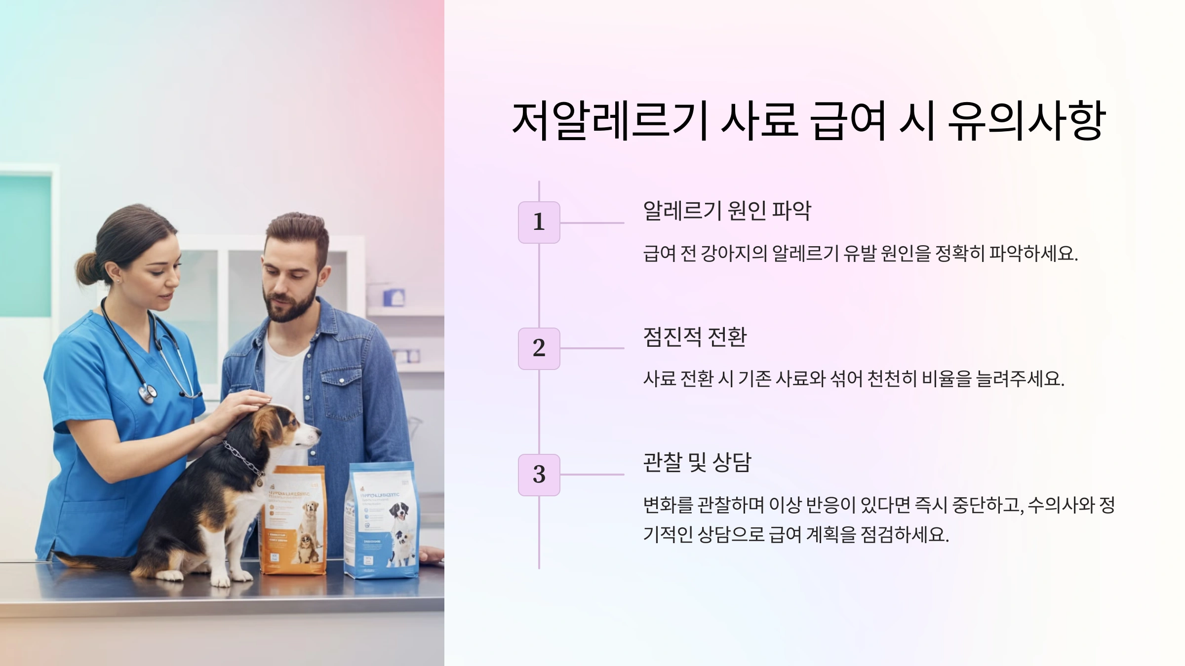 - 알레르기 증상이 사라지더라도, 꾸준한 모니터링과 올바른 사료 급여가 필요합니다.