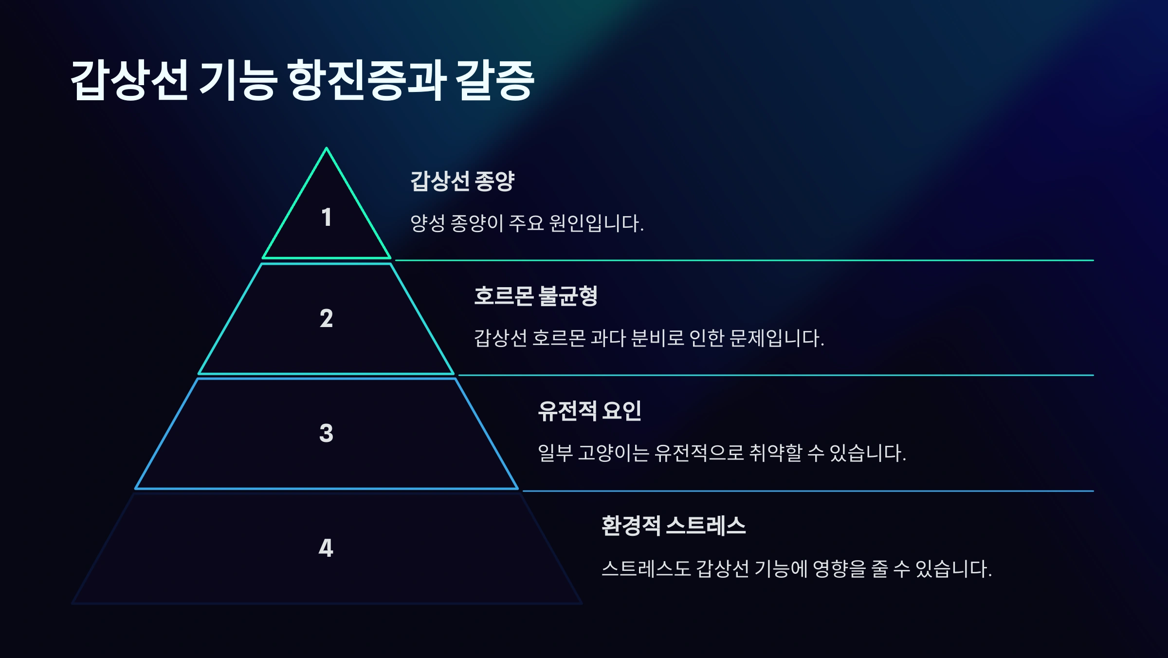 🐱 갑상선 기능 항진증은 고양이의 신진대사가 과도하게 활성화되는 질환이에요. 이로 인해 몸에서 에너지를 빨리 소모하면서 갈증이 심해지고 물을 많이 마시는 증상이 나타날 수 있어요.