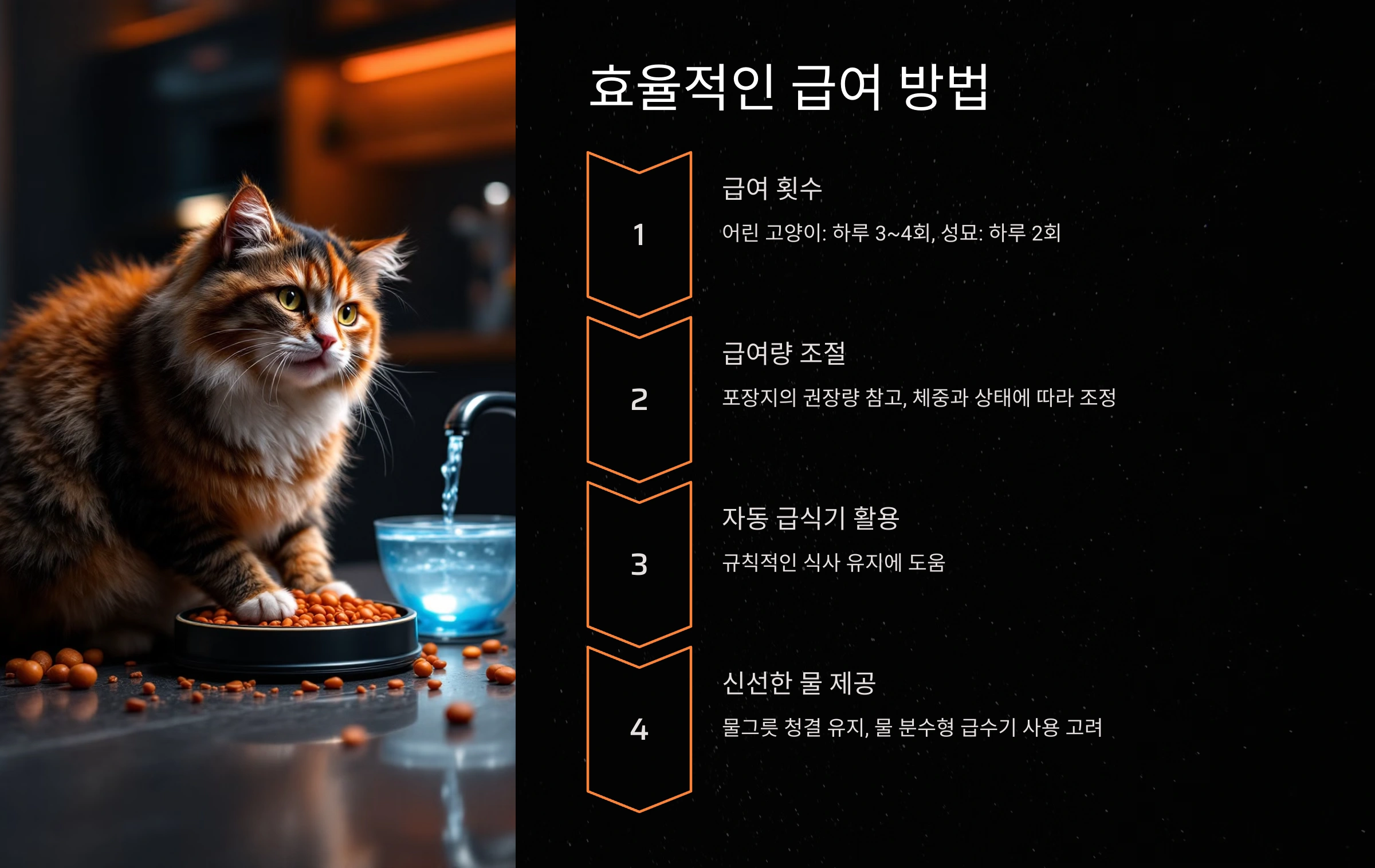 고양이에게 적절한 양의 사료를 급여하는 것은 건강 관리의 핵심이에요. 하루에 몇 번 급여할지는 고양이의 나이와 활동 수준에 따라 달라져요. 예를 들어, 어린 고양이는 하루 3~4회 소량씩 나눠 먹이는 것이 좋고, 성묘는 하루 2회가 적합해요.