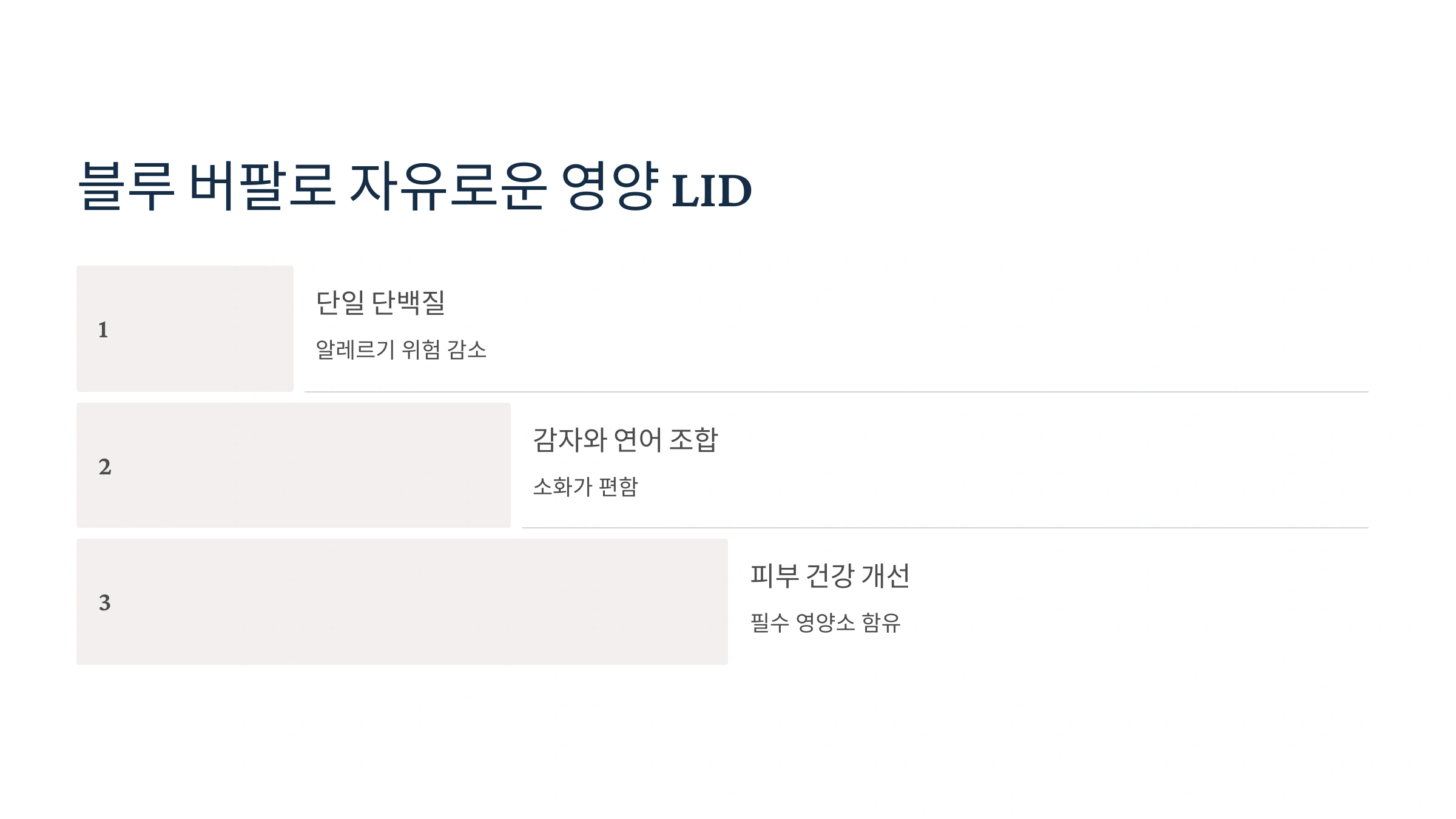 한 가지 단백질 사용 원료 단순화로 알레르기 예방