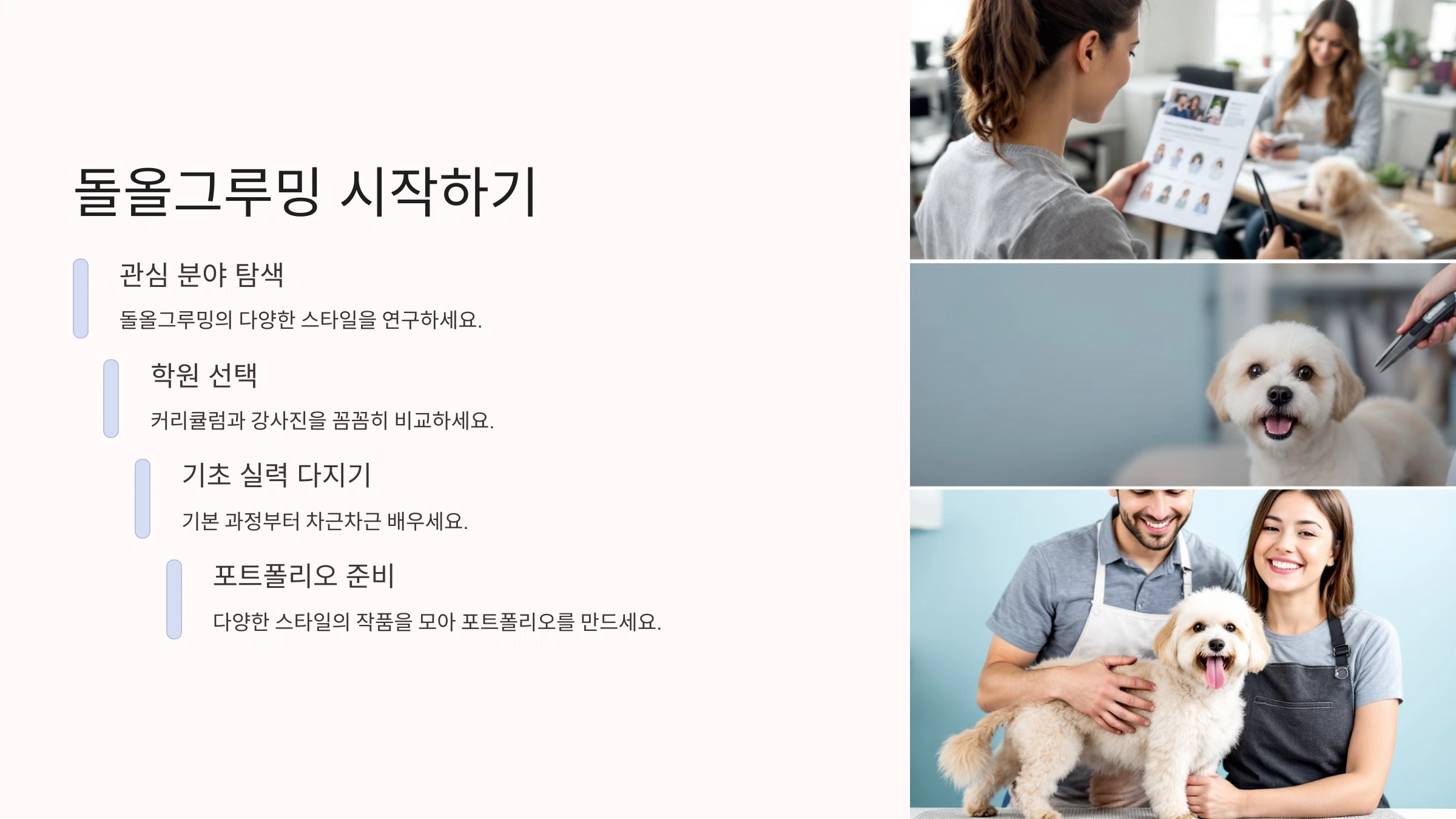 이제 돌올그루밍이 왜 인기인지, 학원을 선택할 때 어떤 점을 고려해야 하는지 살펴볼게요!