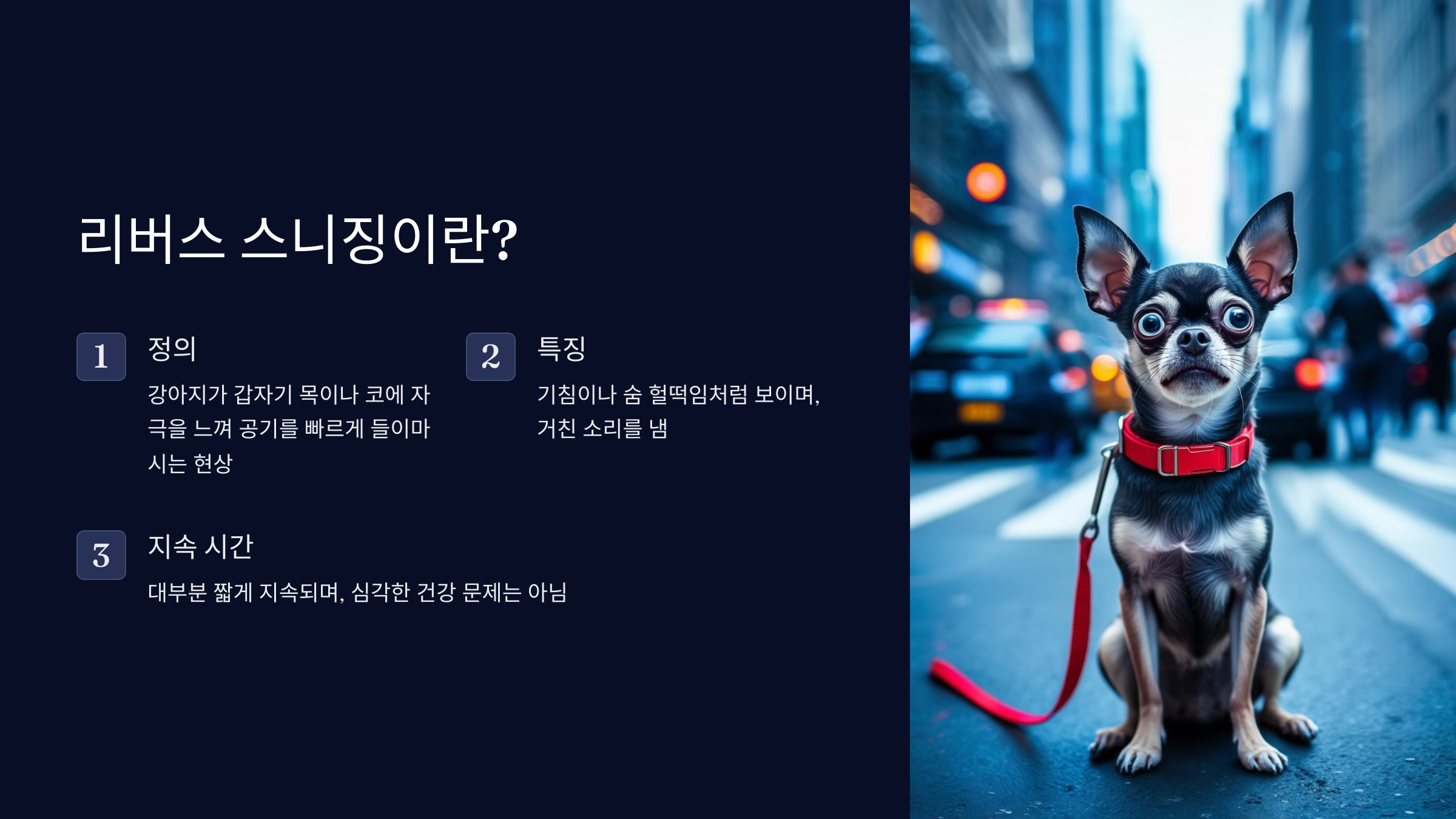 🐕 반려견이 갑자기 숨을 들이마시며 켁켁거리는 소리를 내면 깜짝 놀라게 되죠. 이런 현상을 리버스 스니징(Reverse Sneezing)이라고 해요. 일반적인 재채기가 코에서 공기를 내보내는 것이라면, 리버스 스니징은 반대로 공기를 빠르게 들이마시는 행동이에요.