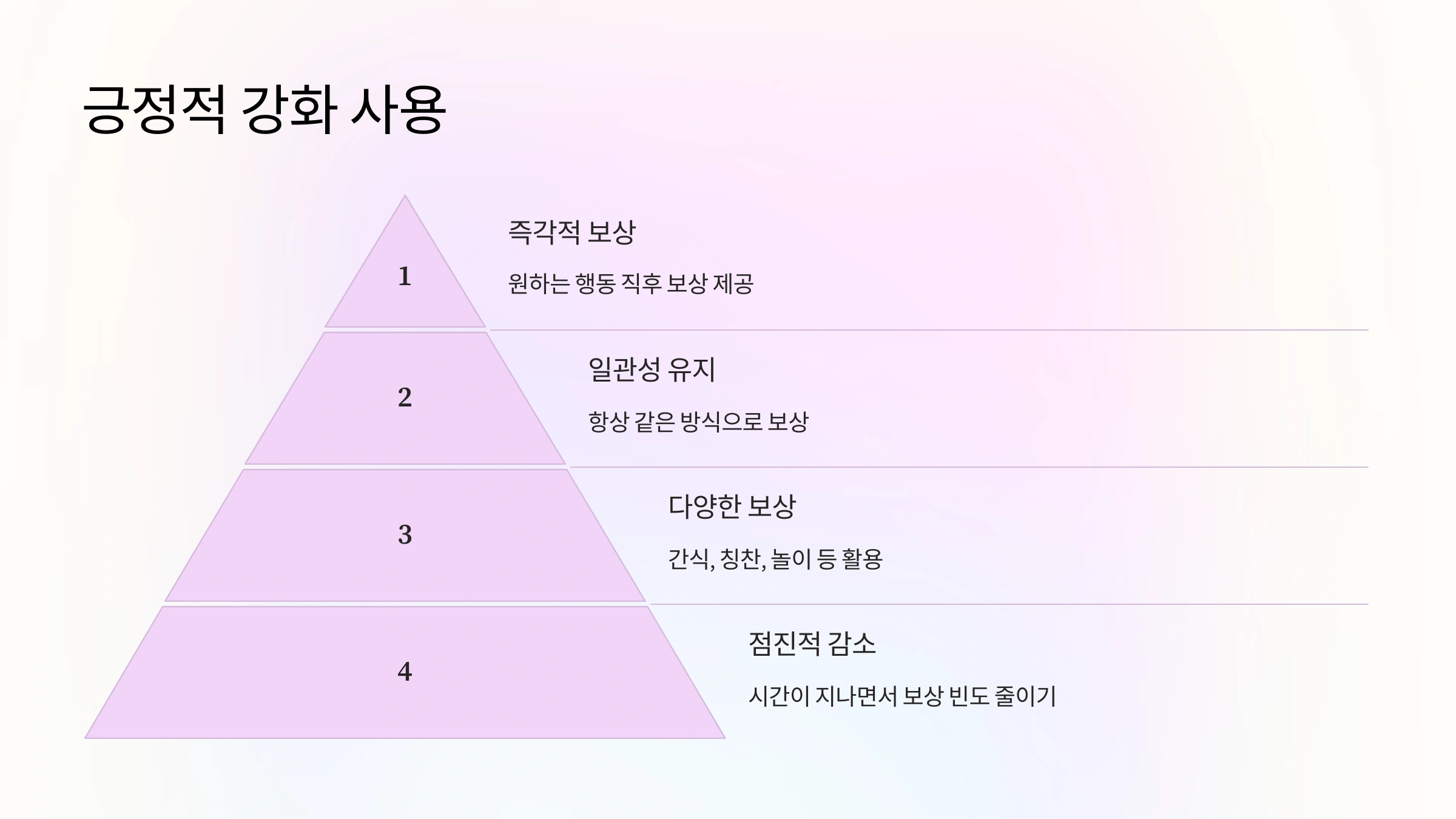 긍정적 강화는 강아지의 행동 수정에 있어 가장 부드럽고 효과적인 방법 중 하나입니다. 강아지가 원하는 행동을 했을 때 보상을 제공하면, 그 행동을 반복하려는 동기가 강해집니다.