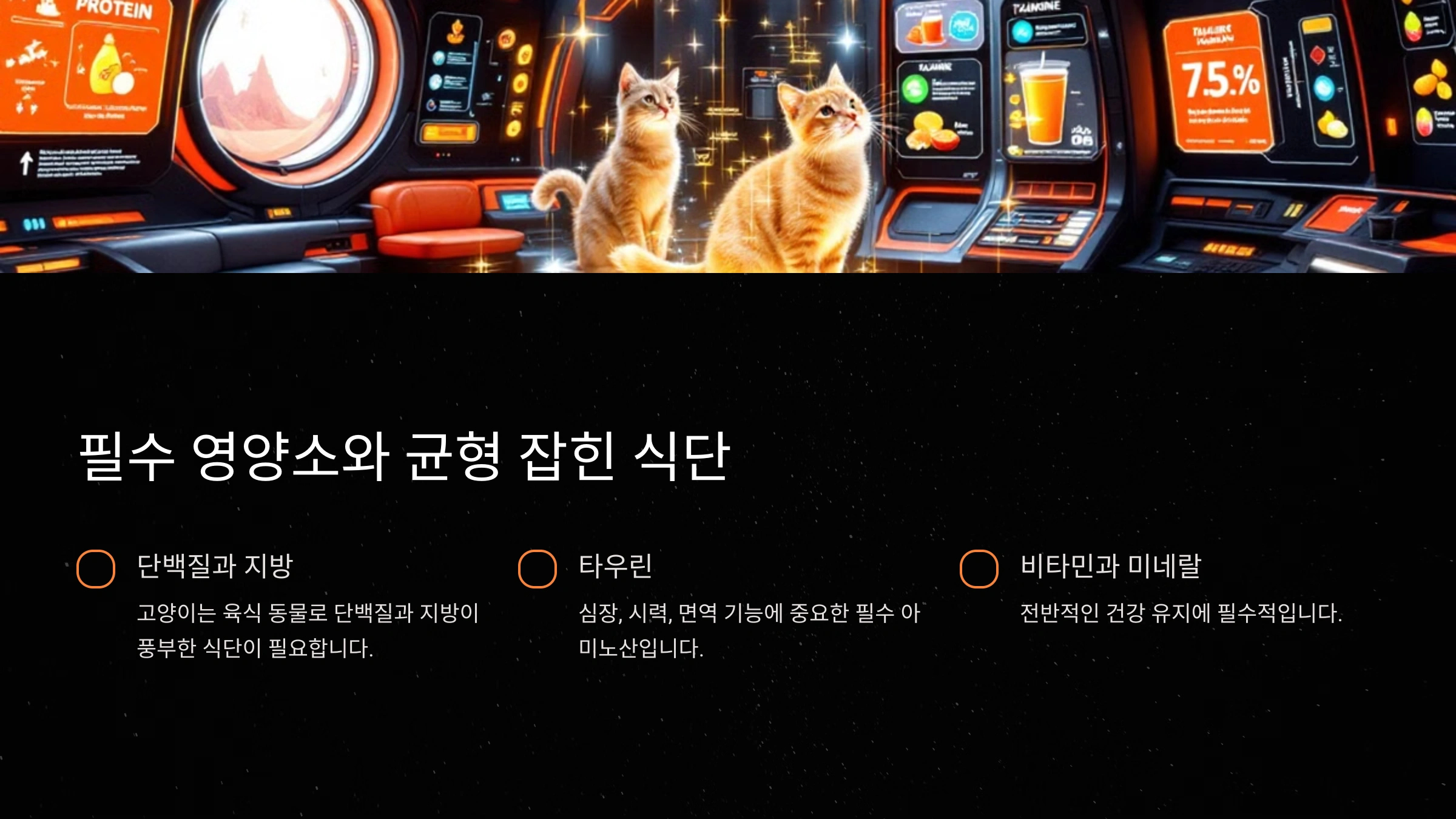고양이는 육식 동물로 단백질과 지방이 풍부한 식단이 필요해요. 특히, 타우린이라는 필수 아미노산이 꼭 포함되어야 하죠. 타우린은 고양이의 심장, 시력, 면역 기능에 매우 중요하기 때문에 모든 사료의 기본 성분으로 포함되어 있어야 해요.