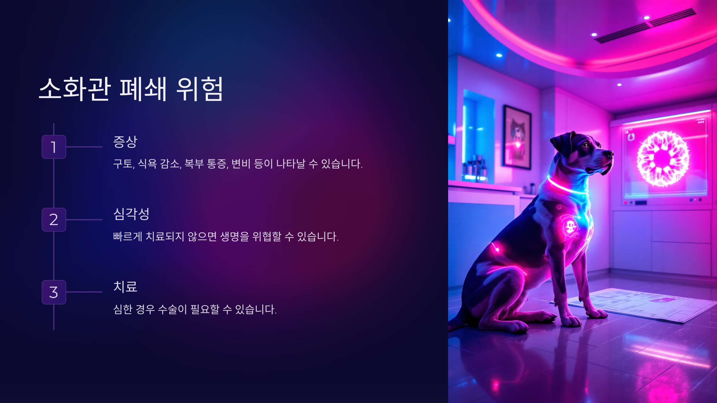 소화관이 막히면 강아지는 구토, 식욕 감소, 복부 통증, 변비 등의 증상을 보일 수 있어요. 이러한 증상이 나타나면 즉시 동물병원에 가는 것이 중요해요. 소화관 폐쇄는 빠르게 치료되지 않으면 생명을 위협할 수 있는 심각한 문제로 이어질 수 있거든요.