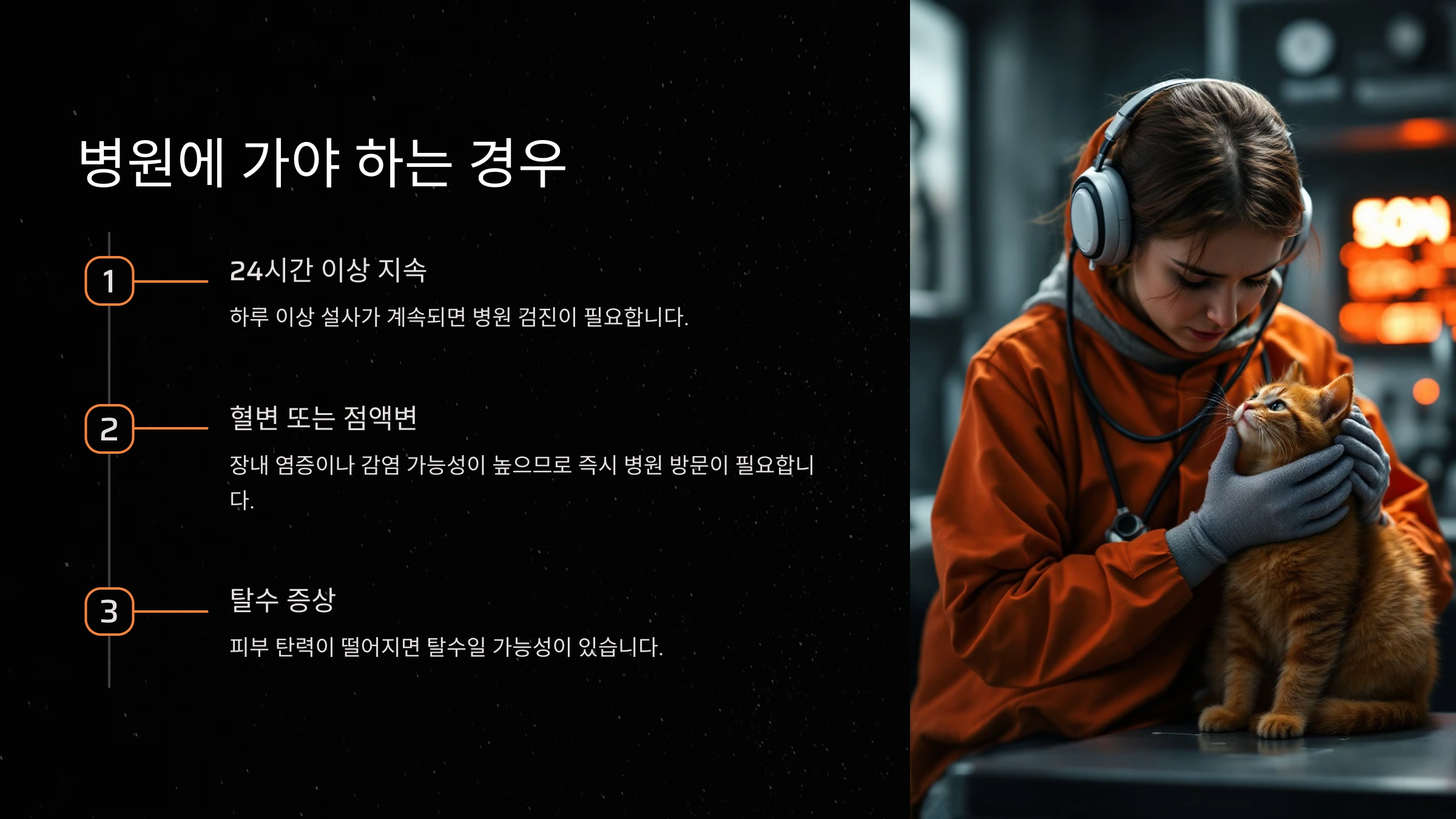 고양이가 설사를 멈추지 않을 때는 빠른 응급 조치가 필요해요. 설사가 심하면 탈수로 이어질 수 있기 때문에 보호자는 즉시 적절한 대처를 해야 해요.