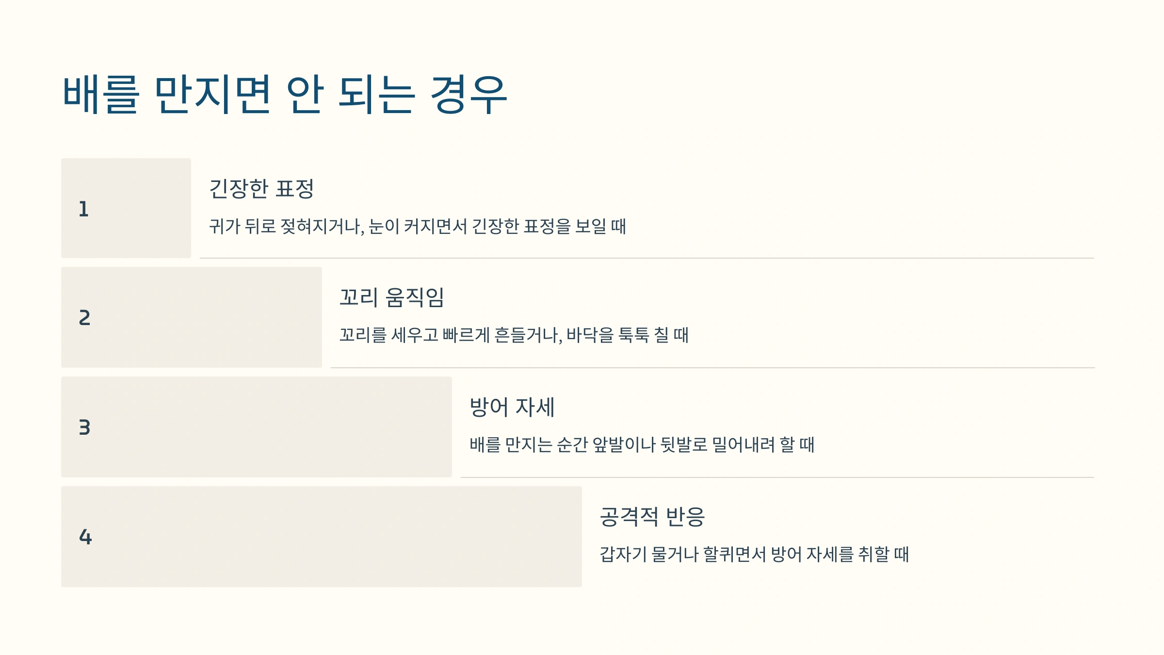 특히 다음과 같은 행동을 보일 때는 절대 배를 만지지 않는 것이 좋아요.