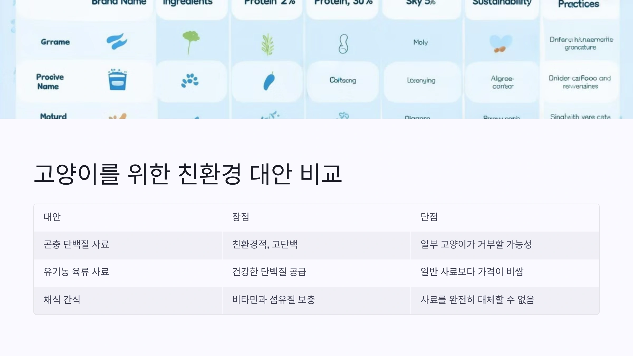 | 곤충 단백질 사료 | 친환경적, 고단백 | 일부 고양이가 거부할 가능성 |