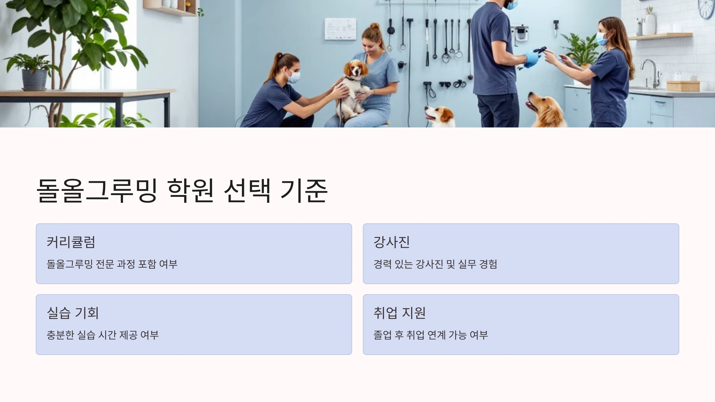 이제 돌올그루밍이 왜 인기인지, 학원을 선택할 때 어떤 점을 고려해야 하는지 살펴볼게요!