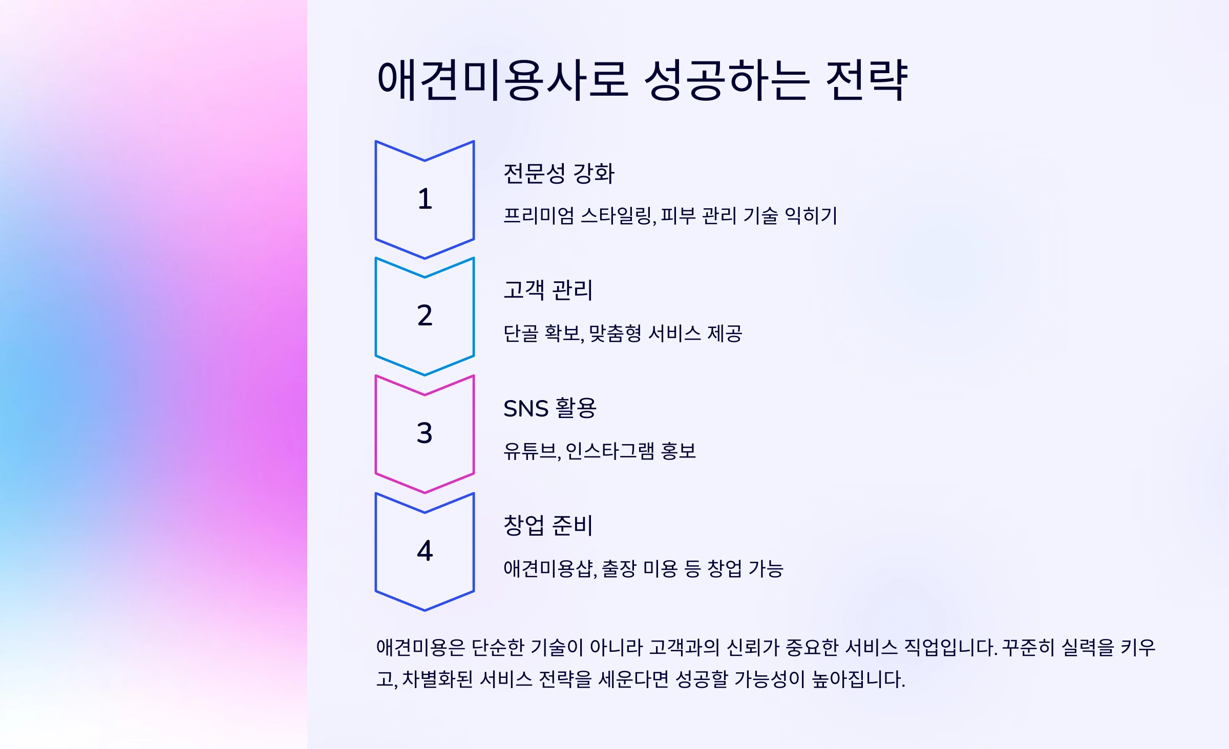 애견미용사는 기술과 경험이 중요한 직업이에요. 꾸준한 실력 향상과 고객 관리가 성공의 열쇠랍니다! 🐶✂️