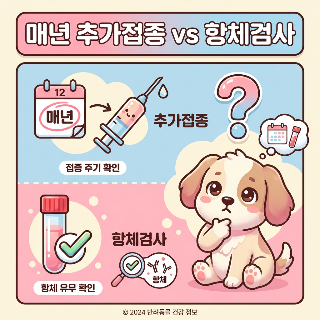 항체가 검사는 혈액을 소량 채취해서 현재 체내 항체 수준을 측정하는 검사예요. 비용은 5만~8만 원 정도이고, 결과에 따라 추가접종 여부를 결정하면 불필요한 백신 투여를 줄일 수 있거든요. 실제로 3년 이상 추가접종을 하지 않은 반려견 중 약 35%는 여전히 충분한 항체를 보유하고 있었다는 국내 연구도 있어요.